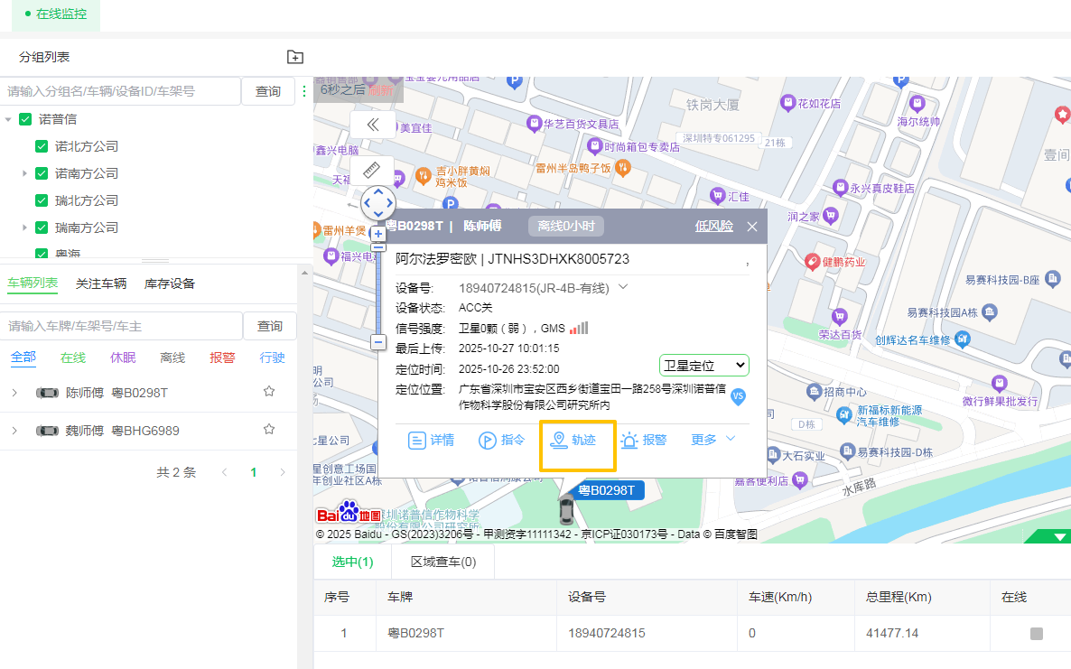 功能入口:选择车辆,在车辆面板点击【轨迹】