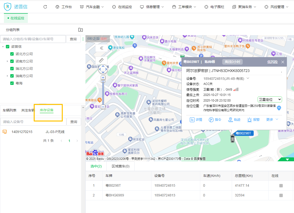 功能:设备已录入平台,但未绑定任何车辆,可随时用于安装。