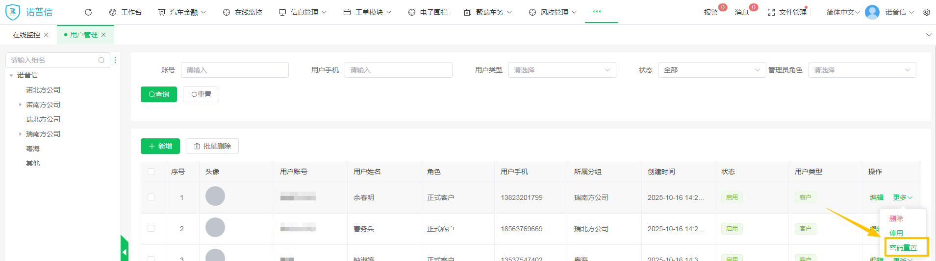 应用场景:在用户忘记密码时,管理员可在此将其密码重置密码。