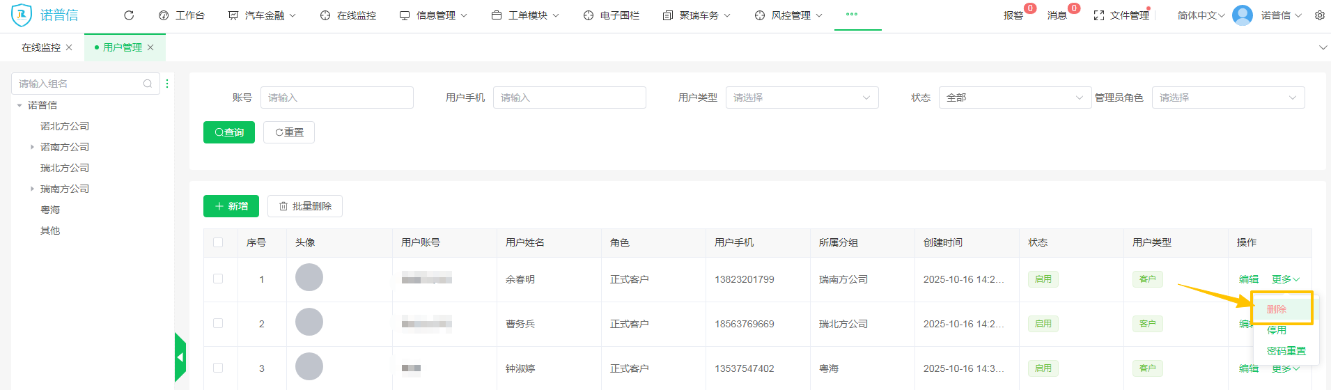 该模块供系统管理员使用,用于创建和管理所有能够登录平台的用户账号,并为其分配具体的操作权限。