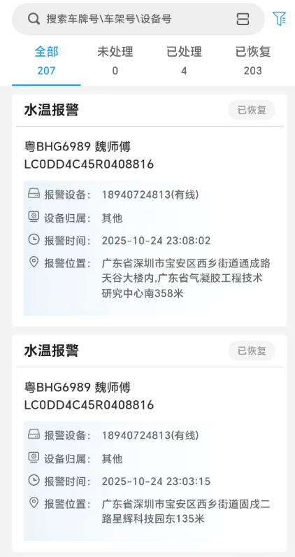已恢复:超过报警持续时间后,系统自动恢复的报警