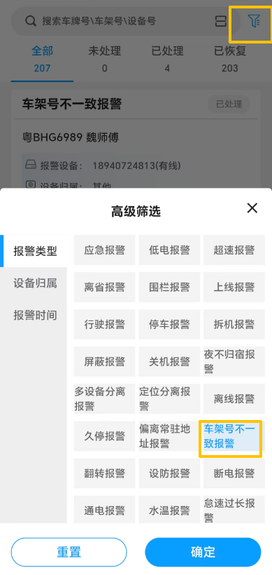 报警类型筛选