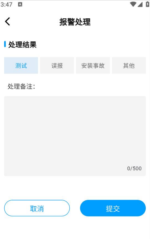 - 其他:对于不属于上述三种情况的报警,选择 “其他”。在选择 “其他” 后,需要在备注栏中详细说明报警的具体情况和处理方式 。